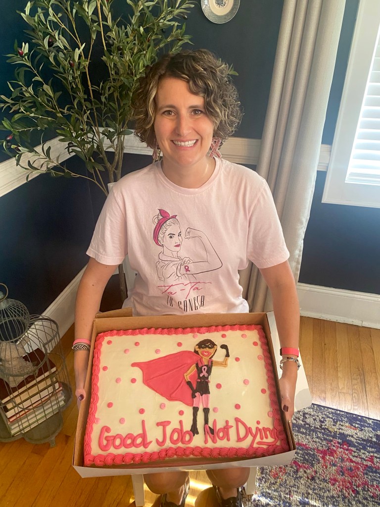 Not picking up on any kind of pensive tone and being unable to fully read her face that was half-hidden by a mask, I replied, “Oh yay! Congratulations! Good for you!”